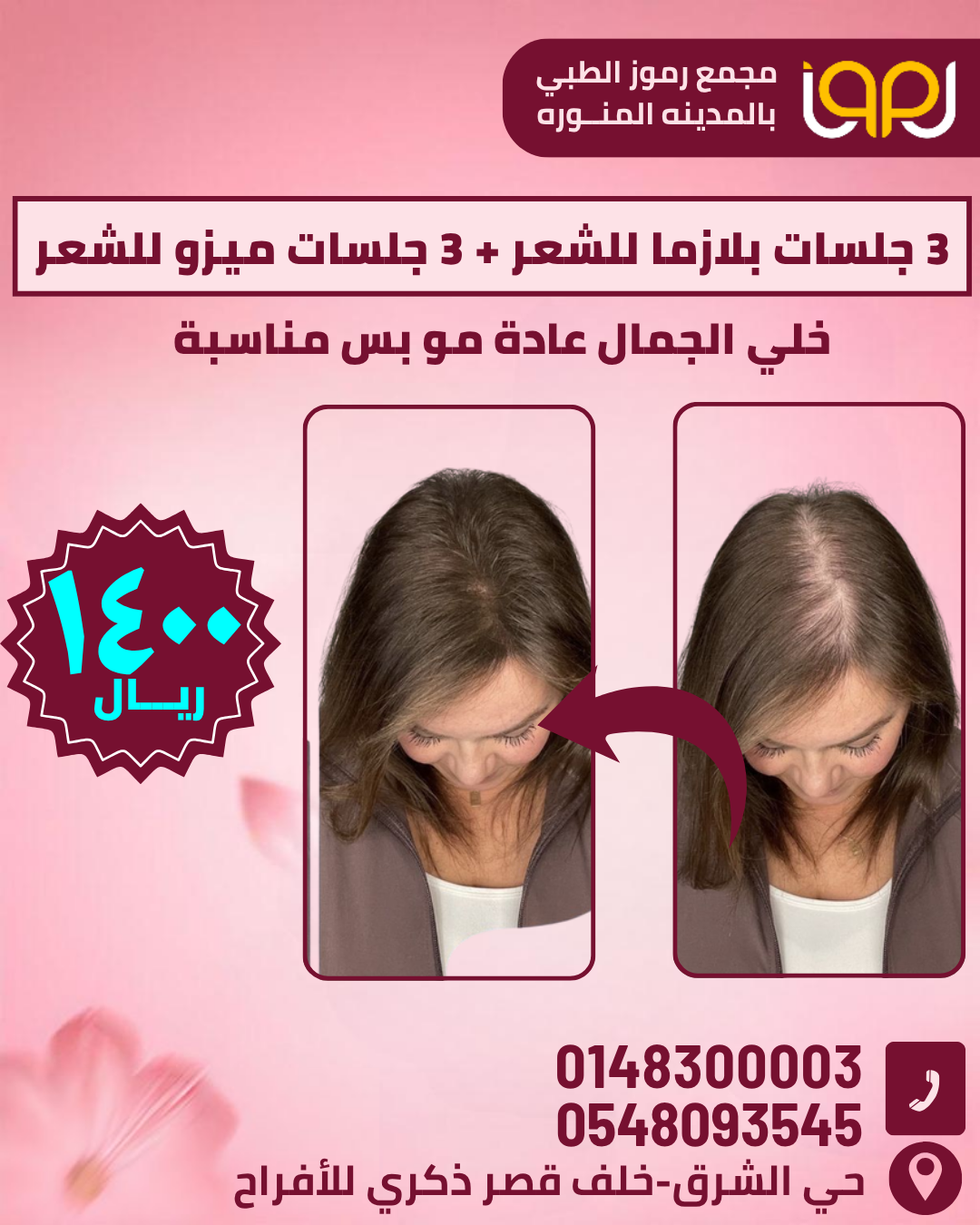 3 جلسات بلازما للشعر + 3 جلسات ميزو للشعر